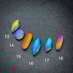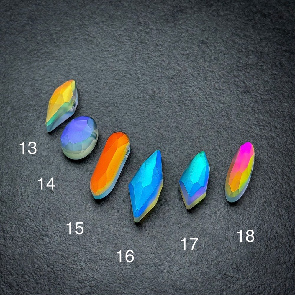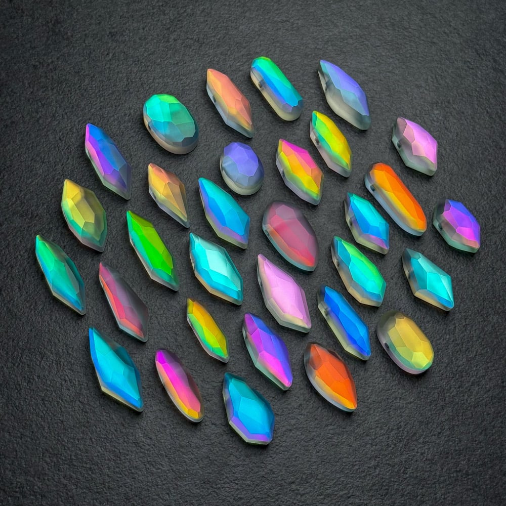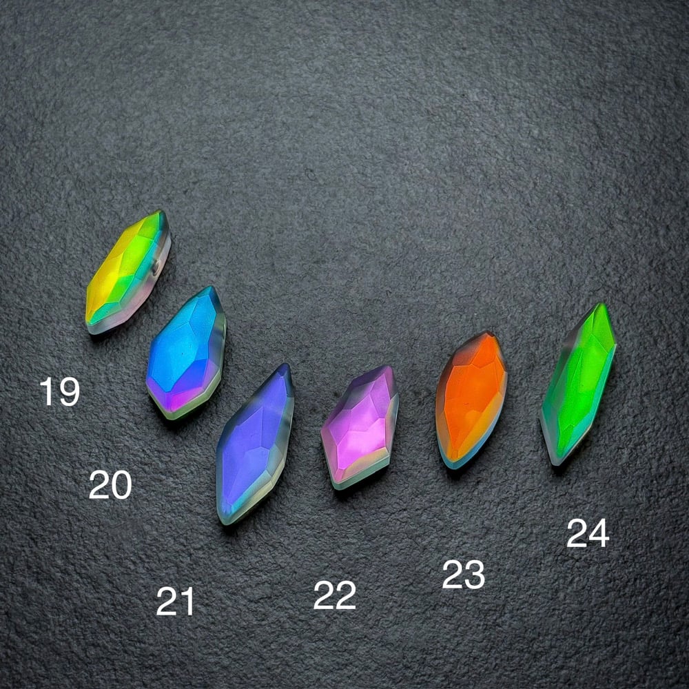 Show off your Lux Captus Crystals everywhere you go! The handmade glass gem’s facets bend and break light into beautifully bright shades that flicker and catch the eye.Surprisingly, they shine best in dimly lit places or at night with just a little light bouncing off of them. They reflect multiple colors and transmit completely different colors. (See slide with white background)